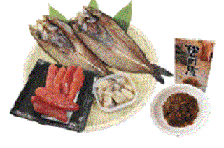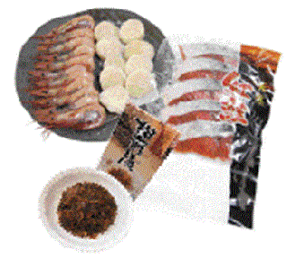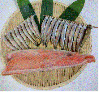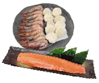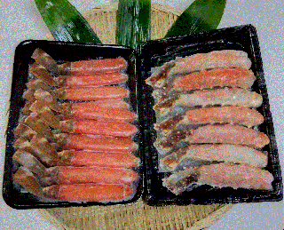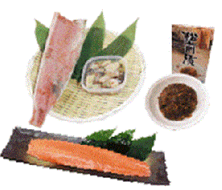 焼き魚セットG(紅鮭ハラス、サーモンルイベ、松前漬、たこわさび)