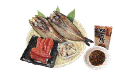 焼き魚セットF(真ほっけ、たらこ、松前漬、たこわさび)